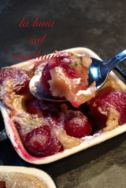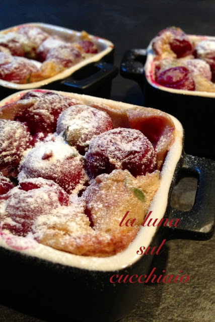 Versare il composto sopra le ciliegie ed infornare a forno già caldo a 180° per circa 15’/18′ minuti o fino a quando la pastella non diventerà dorata in superficie.