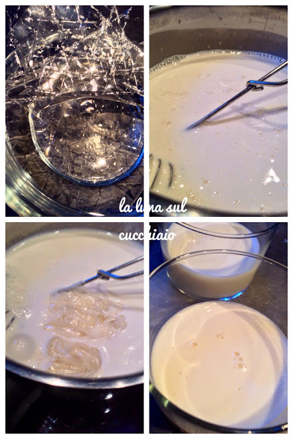 Riscaldare sino a bollore il latte miscelato con la panna e lo sciroppo.