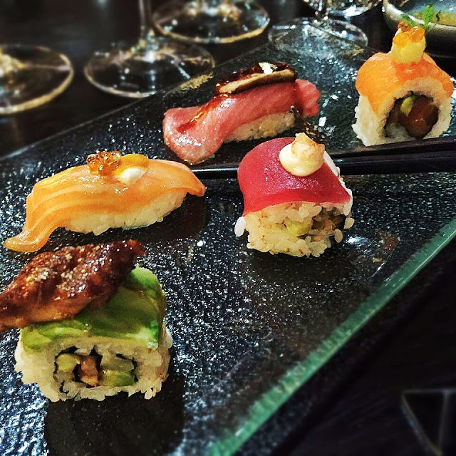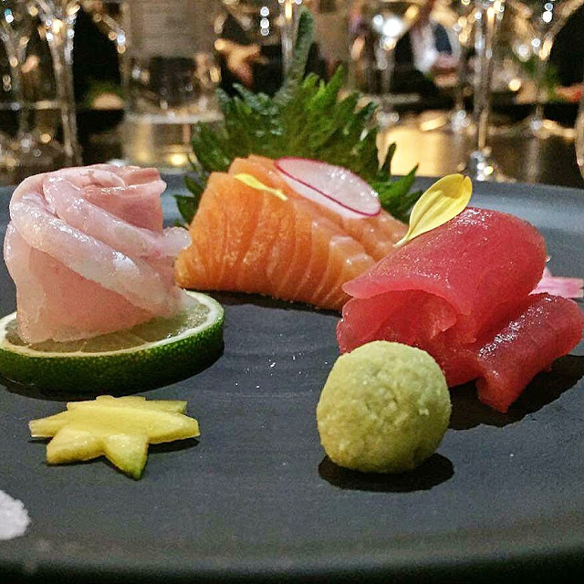 Una location d’eccezione per un’offerta multitasking che spazia dall’aperitivo con cocktail firmati dai barman Alessandro Avilla e Lorenzo Andreoni rispettivamente ex Dry e Nobu, solo per citare le ultime esperienze meneghine, ma con non meno importanti esperienze internazionali, che gestiscono 250 alcolici tra distillati e liquori, il mio consiglio è di accomodarsi ad un tavolo, o direttamente al bancone, per un classico cocktail per sorseggere un drink a base di Sakè come il Shinkansen, è lo stesso nome dell’alta velocità giapponese per la facilità con cui scende in gola, sgranocchiando i particolari grissini aromatizzati ed esplorare la cucina fusion con qualche stuzzichino, da non perdere il finto pomodoro o l’astice blu in gelatina servito su una figlia di shiso, una sorta di basilico giapponese profumatissimo e salutare.Ma è a tavola che si assapora il felice incontro tra le migliori materie prime italiane e nipponiche e il tocco sapiente dell’ Executive Chef Niimori Nobuya, giapponese doc innamorato del nostro bel paese, in Italia da molti anni e sposato con una italiana, coadiuvato in cucina da 6 chef giapponesi e 5 italiani.